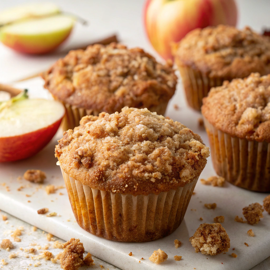 Moist and tender apple muffins with a crumbly cinnamon streusel topping, perfect for breakfast, brunch, or dessert.