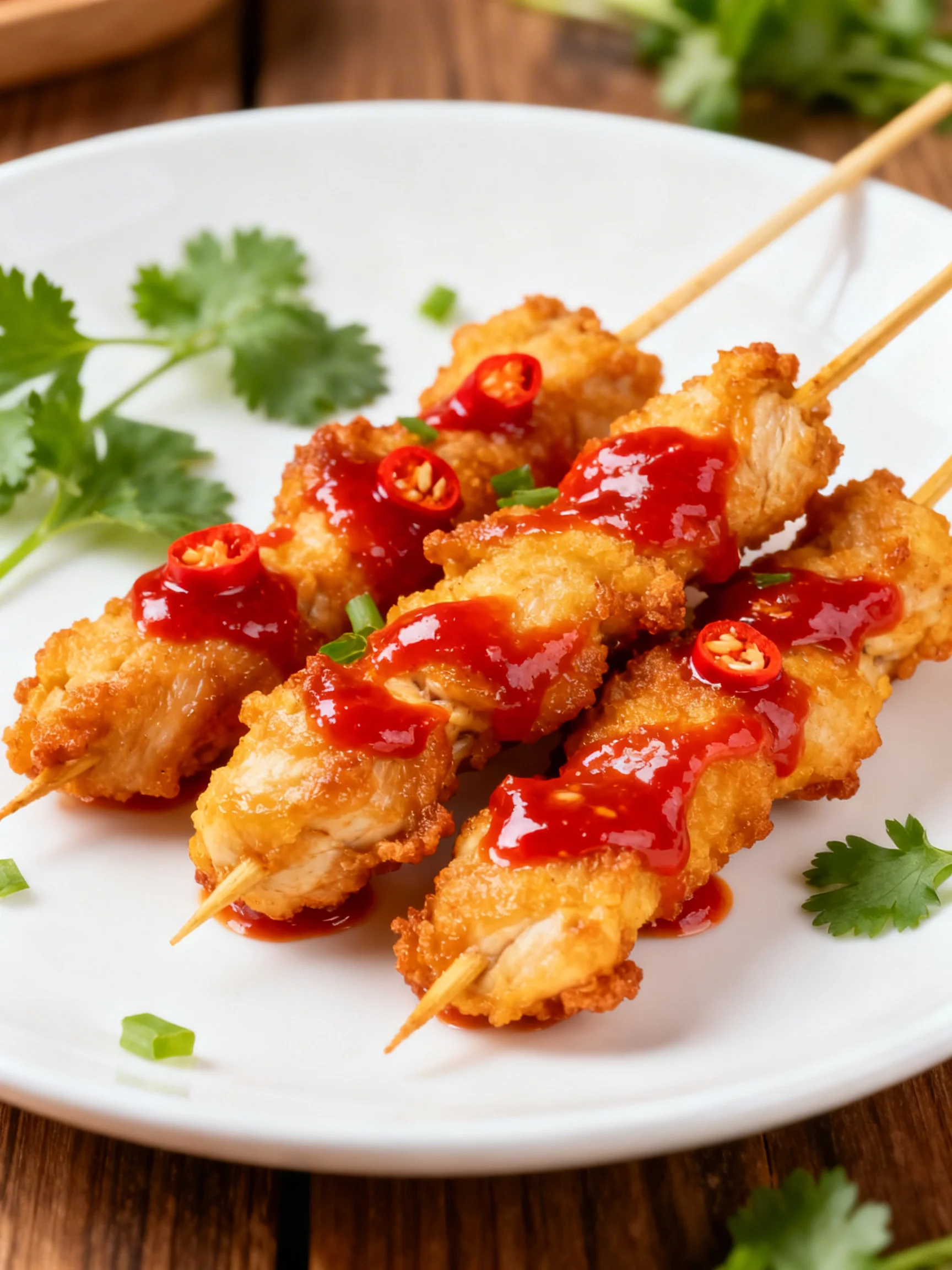 - Serve the Bang Bang Chicken Skewers hot, garnished with freshly chopped parsley or sesame seeds if desired, alongside extra Bang Bang sauce for dipping.