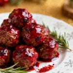 Once the glaze is thick and glossy and the meatballs are heated through, your appetizer is ready. For serving, I recommend a slow cooker on the “warm” setting to keep these festive cranberry meatballs perfect throughout your party. Garnish with a sprinkle of fresh parsley or orange zest for a bright, festive touch.