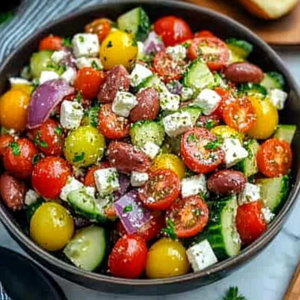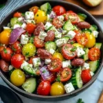 Context: This classic Greek salad comes together in about 20 minutes, making it over 50% faster than recipes that require marinating vegetables for hours. It’s the perfect make-ahead option for picnics or potlucks, as the flavors meld beautifully when chilled for 30 minutes before serving.
