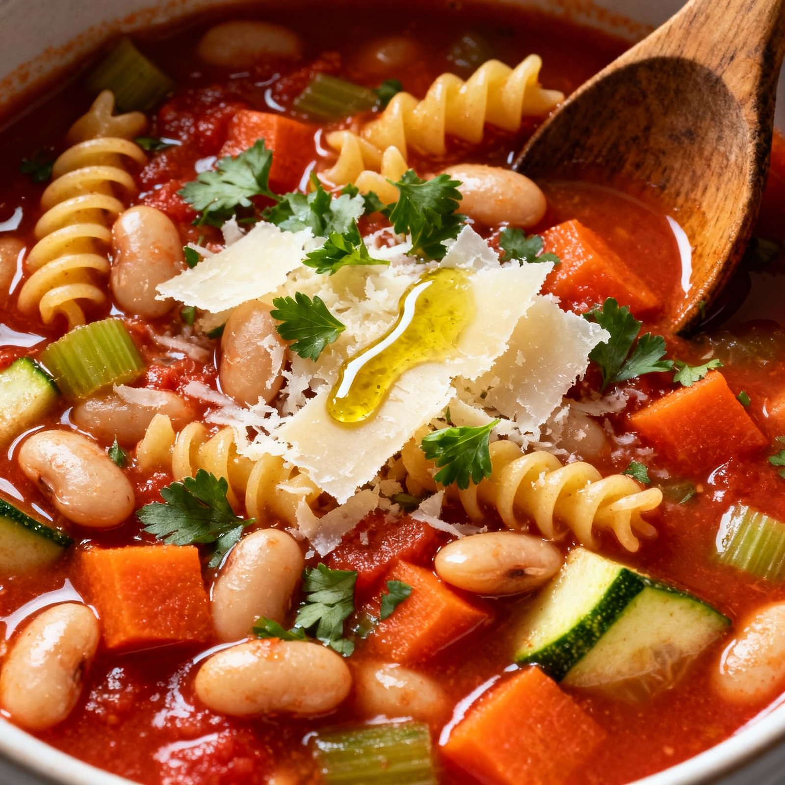 A classic Italian vegetable soup filled with pasta, beans, tomatoes, and fresh herbs, perfect for a hearty and healthy meal.