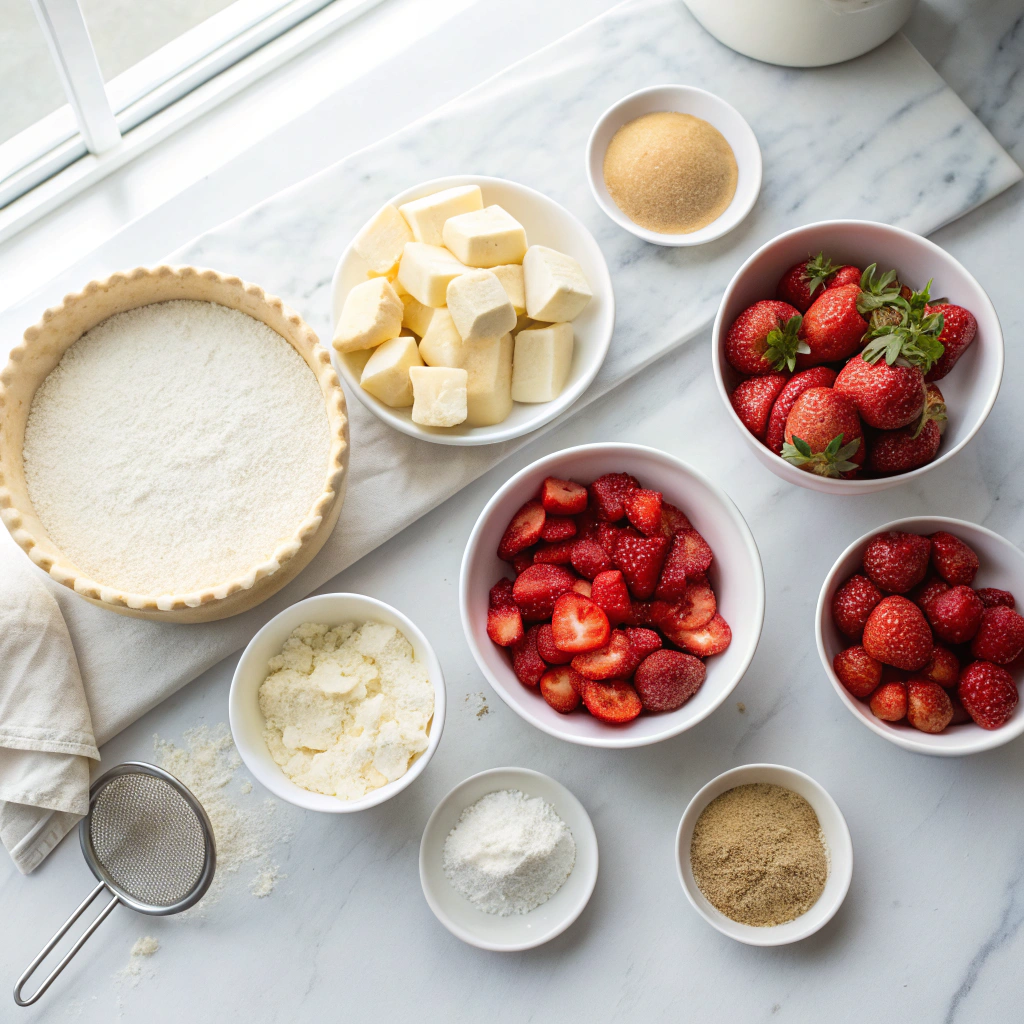 First, gather all your ingredients for the Best Strawberry Pie Recipe so everything stays organized. Meanwhile, preheat your oven to 375°F to save time later. Next, whisk together the flour, sugar, and salt in a large bowl before cutting in the cold butter until the mixture resembles coarse crumbs. Then, drizzle ice water into the dough, stirring just until it comes together. After that, roll out the dough on a floured surface and carefully transfer it to your pie dish, trimming the edges for a clean finish. While the crust bakes for about 15 minutes, slice your fresh strawberries and toss them with sugar, cornstarch, and a splash of lemon juice to enhance their flavor. Once the crust cools slightly, layer the strawberry filling evenly inside. For a golden finish, brush the edges with an egg wash before returning the pie to the oven for another 30 minutes. Finally, let the pie chill for at least two hours to set perfectly. If you’re short on time, use a store-bought crust, but don’t skip chilling—it makes all the difference!