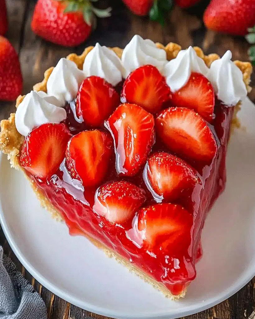The Best Strawberry Pie Recipe delivers a symphony of flavors and textures that make every bite unforgettable. Imagine a buttery, flaky crust that shatters delicately under your fork, giving way to a luscious layer of sweet-tart strawberry filling. The strawberries, ripe and juicy, burst with natural sweetness, while a hint of lemon zest brightens the flavor profile. Because the filling is lightly thickened, it strikes the perfect balance between silky and slightly jammy, so each slice holds its shape without feeling heavy. The aroma alone is intoxicating, with fragrant vanilla and warm sugar mingling with the fresh berries. When you take a bite, the contrast between the crisp crust and the tender fruit creates a satisfying harmony. Even though the pie is rich, it never feels overly sweet, thanks to the natural acidity of the strawberries. Whether served warm or chilled, the Best Strawberry Pie Recipe is a celebration of summer in every slice.