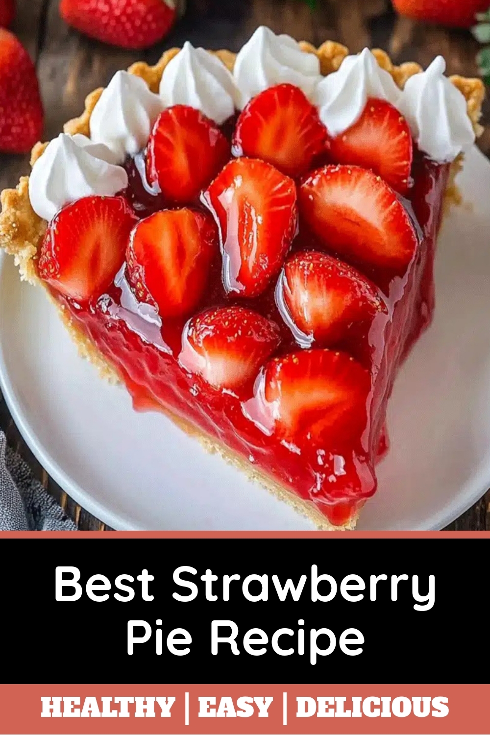 When serving the Best Strawberry Pie Recipe, presentation makes all the difference. For a stunning look, top each slice with a dollop of freshly whipped cream and a few whole strawberries. Alternatively, dust the pie with powdered sugar for an elegant touch. If you’re hosting a summer brunch or holiday gathering, place the pie on a decorative cake stand to make it the centerpiece. Meanwhile, casual dinners call for a simpler approach—just slice and serve with a scoop of vanilla ice cream. No matter the occasion, this pie always shines.