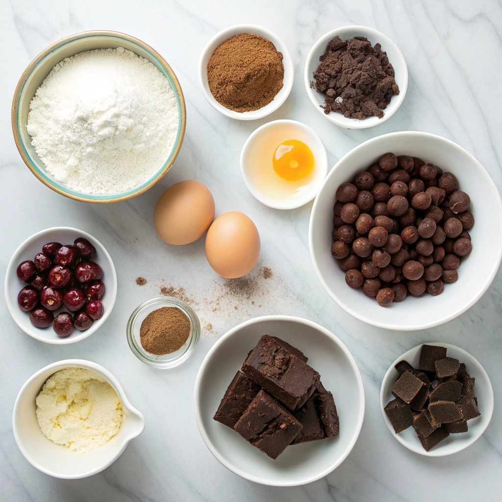 First, preheat your oven to 350°F and line a baking sheet with parchment paper. While the oven heats, whisk together the dry ingredients for the brownie layer in a large bowl. Next, melt the butter and chocolate in a microwave-safe bowl, stirring every 30 seconds until smooth. Pour the melted mixture into the dry ingredients and fold gently to avoid overmixing. Meanwhile, prepare the cookie dough by creaming the butter and sugar until fluffy, then gradually add the remaining ingredients. Once both mixtures are ready, scoop small portions of the brownie batter onto the baking sheet, leaving space for spreading. Bake for 10–12 minutes, then let the brownies cool completely. While they cool, roll the cookie dough into small balls and press a cherry into the center of each. Finally, assemble your Black Forest Cookie Dough Brownie Bombs Recipe by sandwiching the cookie dough between two brownie rounds. Drizzle with melted chocolate and chill for 30 minutes to set. For a quicker version, use store-bought brownie mix or cookie dough, but homemade always tastes richer!