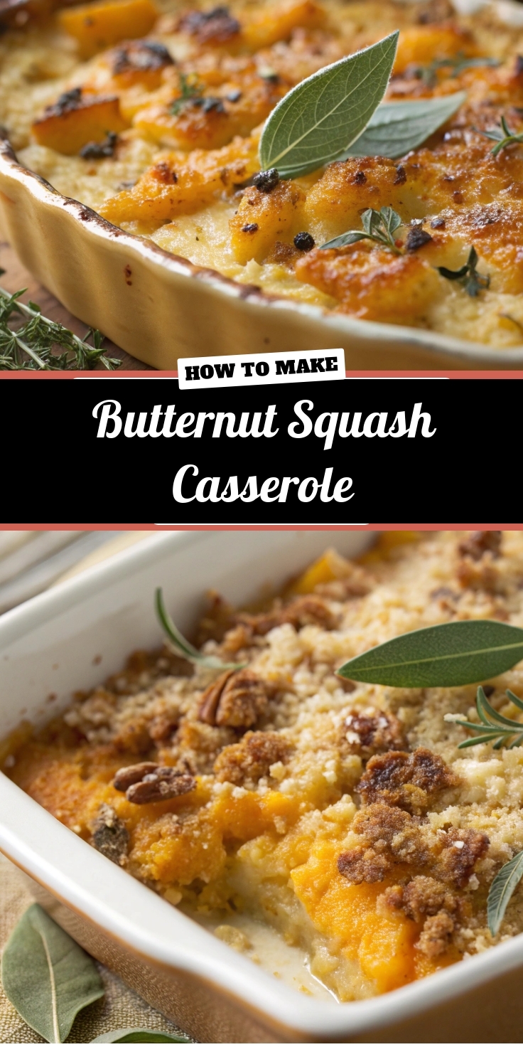 This Butternut Squash Casserole delivers a masterful harmony of comforting textures and deep, warming flavors. You first experience a wonderfully crisp and golden-brown topping, which gives way to an impossibly creamy and velvety interior. The natural sweetness of the roasted squash shines through, although it is beautifully balanced by the savory, salty richness of cheeses like sharp cheddar or nutty Gruyère. Aromatic whispers of sage and a gentle warmth from nutmeg or cinnamon fill the air, making your kitchen smell absolutely incredible. Each spoonful is a cozy embrace, featuring tender pieces of squash that melt in your mouth against the fluffy, almost airy body of the custard. The contrasting crunch from a buttery breadcrumb or toasted pecan topping provides a perfect textural counterpoint, ensuring every bite is exciting. Ultimately, this Butternut Squash Casserole feels like a luxurious hug in a baking dish, combining rustic sweetness with sophisticated savory notes for a truly unforgettable side dish.