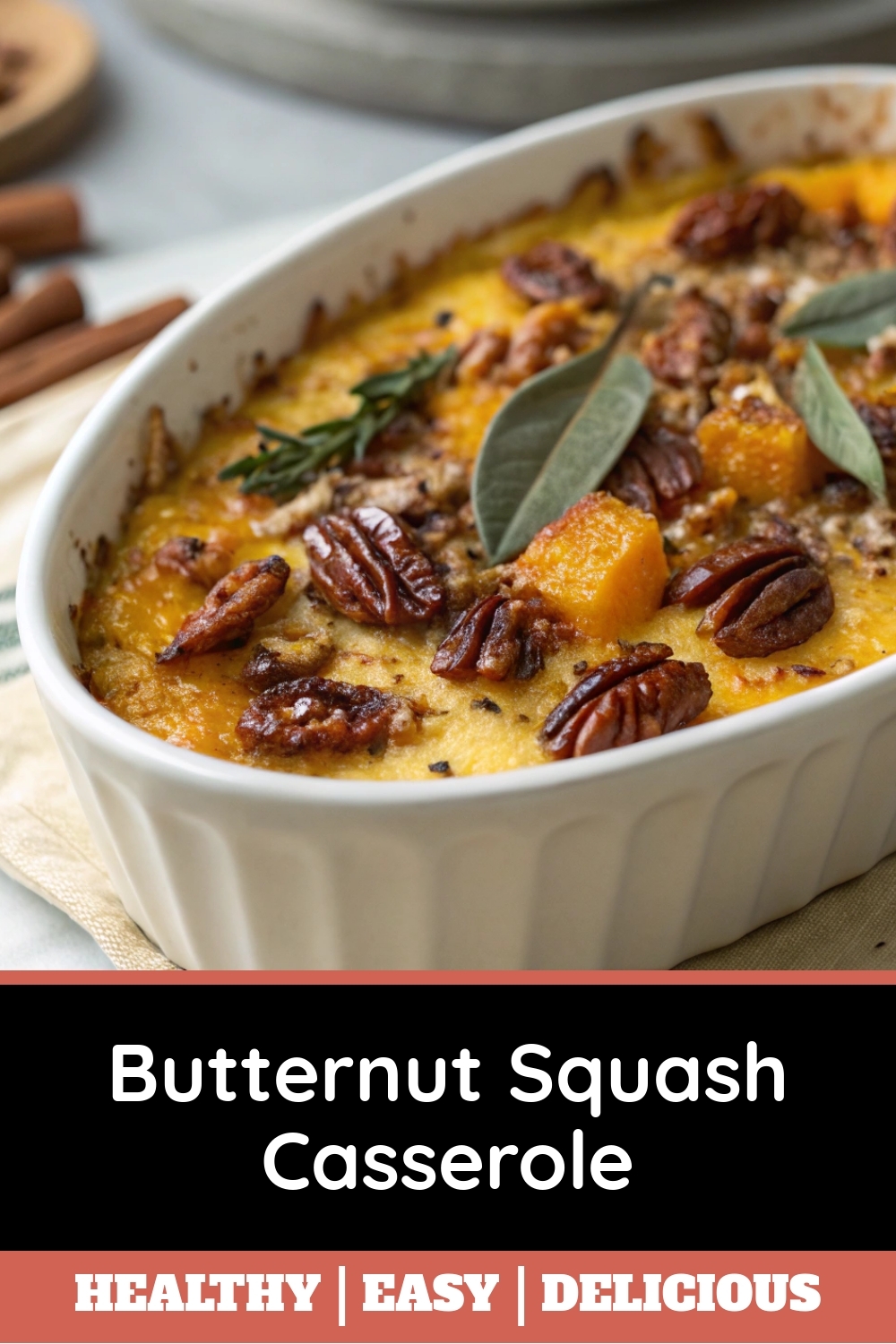 This Butternut Squash Casserole delivers a masterful harmony of sweet and savory notes, so every bite feels like a warm embrace. The foundation is the naturally sweet and nutty squash, which becomes incredibly tender and velvety when roasted. That creamy squash base is often enriched with ingredients like brown sugar or maple syrup, although a generous pinch of salt and black pepper ensures it never becomes cloying. You will notice the warm, fragrant aroma of spices like cinnamon, nutmeg, and sage that fills your kitchen long before the dish even comes out of the oven. The texture is where this casserole truly shines, because the contrast is utterly delightful. The interior remains luxuriously smooth and almost pudding-like, while the top bakes into a golden-brown, crisp crust. A buttery, crunchy pecan or oat streusel topping provides a fantastic counterpoint to the soft filling, adding a necessary chewy and crisp element. This Butternut Squash Casserole is the ultimate comfort food, as it feels both rich and surprisingly light on the palate.