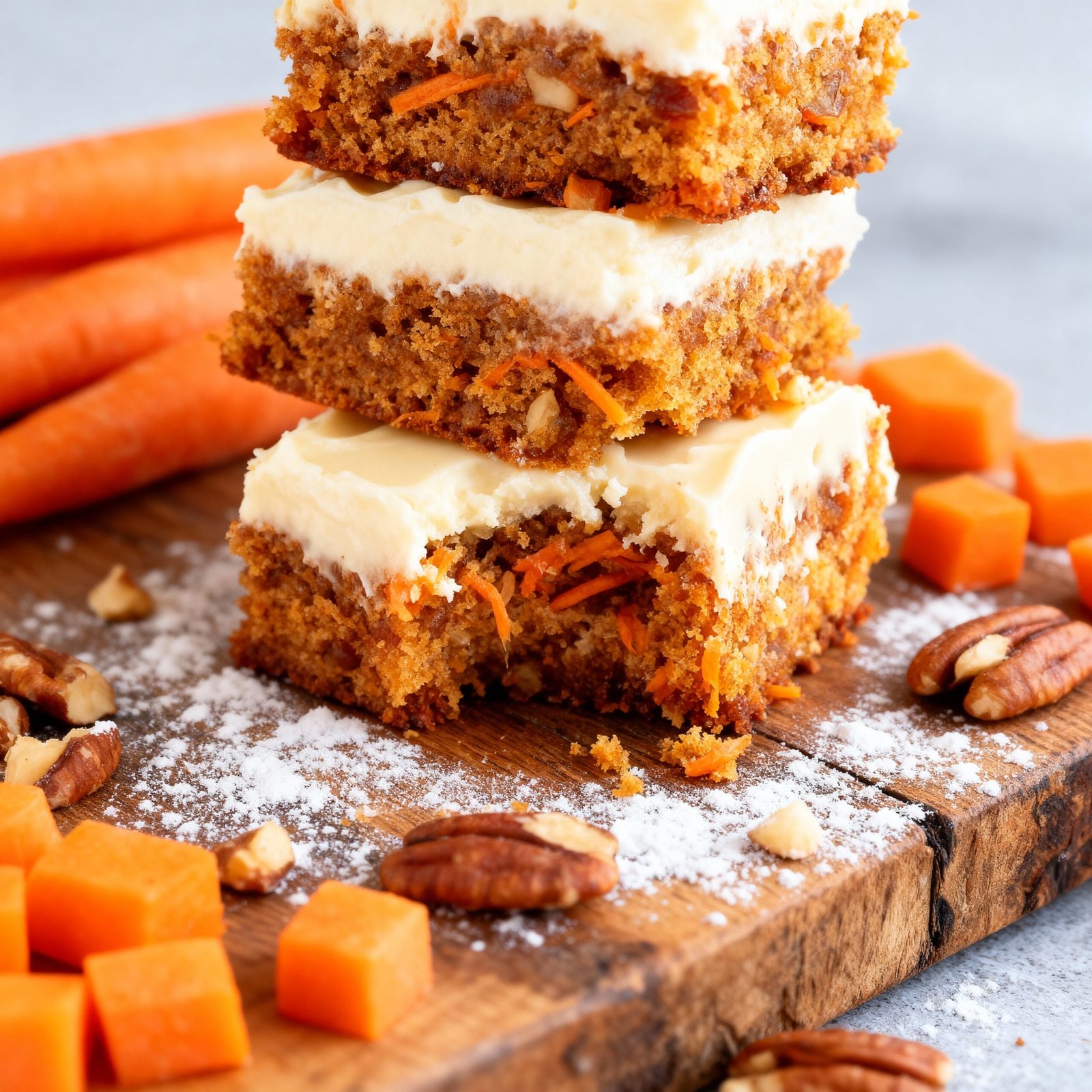 - Mistake: Cutting the bars immediately, which leads to messy, crumbly pieces. Fix: For clean cuts, chill the frosted carrot cake bars in the fridge for an hour before slicing.
