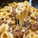 This Cheesesteak Tortellini in Rich Provolone Sauce combines tender beef, colorful peppers, and pillowy pasta in a creamy, savory cheese sauce that’s pure comfort food perfection.