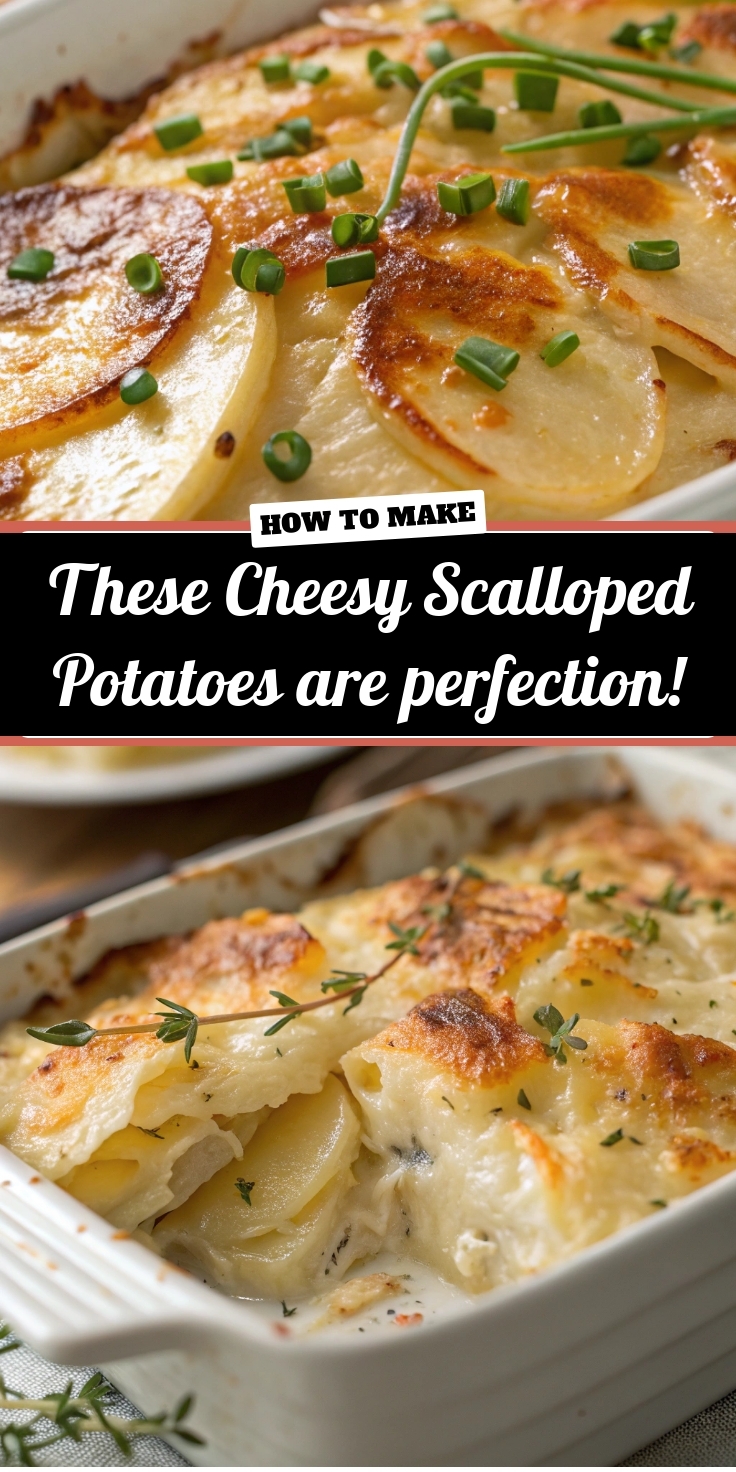 These Cheesy Scalloped Potatoes are perfection! They deliver a masterclass in contrasting textures. Each forkful begins with a crisp, golden-brown crust that gives way to impossibly tender, thinly sliced potatoes underneath. The sauce is luxuriously creamy and rich, so it clings to every slice for a profoundly satisfying mouthfeel. Fragrant garlic and sweet, caramelized onions weave through the layers, while the sharp, salty punch of aged cheddar cheese provides a deeply savory backbone. When it emerges from the oven, the aroma is utterly intoxicating because it blends buttery, cheesy, and herbal notes that promise comfort. The final result is a harmonious dish where soft, melt-in-your-mouth potatoes meet a velvety, decadent sauce. These Cheesy Scalloped Potatoes are perfection! for anyone seeking the ultimate side dish that feels both elegant and deeply comforting.