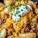 These savory ingredients come together to create a mouthwatering Cheesy Taco Potatoes dish with layers of seasoned beef, tender potatoes, and gooey melted cheese.