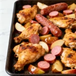 This Chicken Apple Sausage Sheet Pan Dinner is the ultimate proof that minimal effort can yield maximum flavor. Its perfect balance of sweet, savory, and crisp textures makes it a reliable favorite that everyone at the table will love. For another easy one-pan wonder, try this Sheet Pan Lemon Herb Chicken and Vegetables Recipe. Give this recipe a try and share your experience in the comments below!