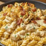 This Chicken Bacon Ranch Pasta recipe is simple, delicious, and perfect for busy weeknights. It combines tender chicken, crispy bacon, and creamy ranch sauce with pasta for a comforting meal everyone will love. For another easy pasta dinner, try this Creamy Cajun Sausage Ravioli Recipe or this hearty Ground Beef and Rice Casserole | Easy Dinner Idea Recipe.