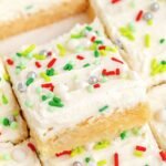 Always cool your Christmas Sugar Cookie Bars completely before storing to prevent condensation and sogginess.
