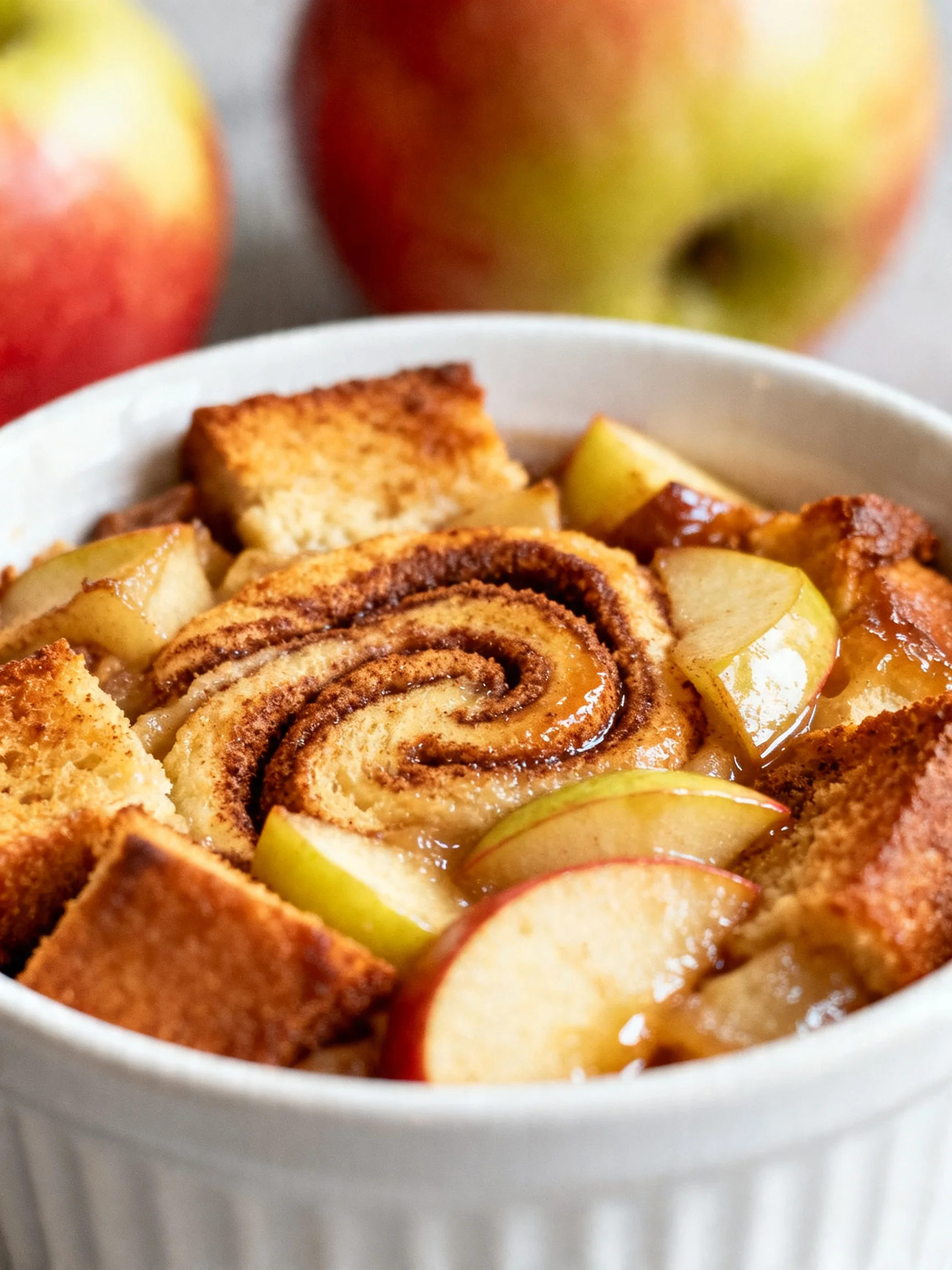 This recipe shines with humble ingredients. Using a sturdy, day-old bread like brioche or challah is key, as it soaks up the custard without becoming mushy. Fresh, crisp apples add the perfect texture and natural sweetness.