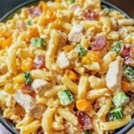 A zesty pasta salad that captures the flavors of a club sandwich, featuring chicken, bacon, cheese, and vegetables tossed in a creamy dressing.