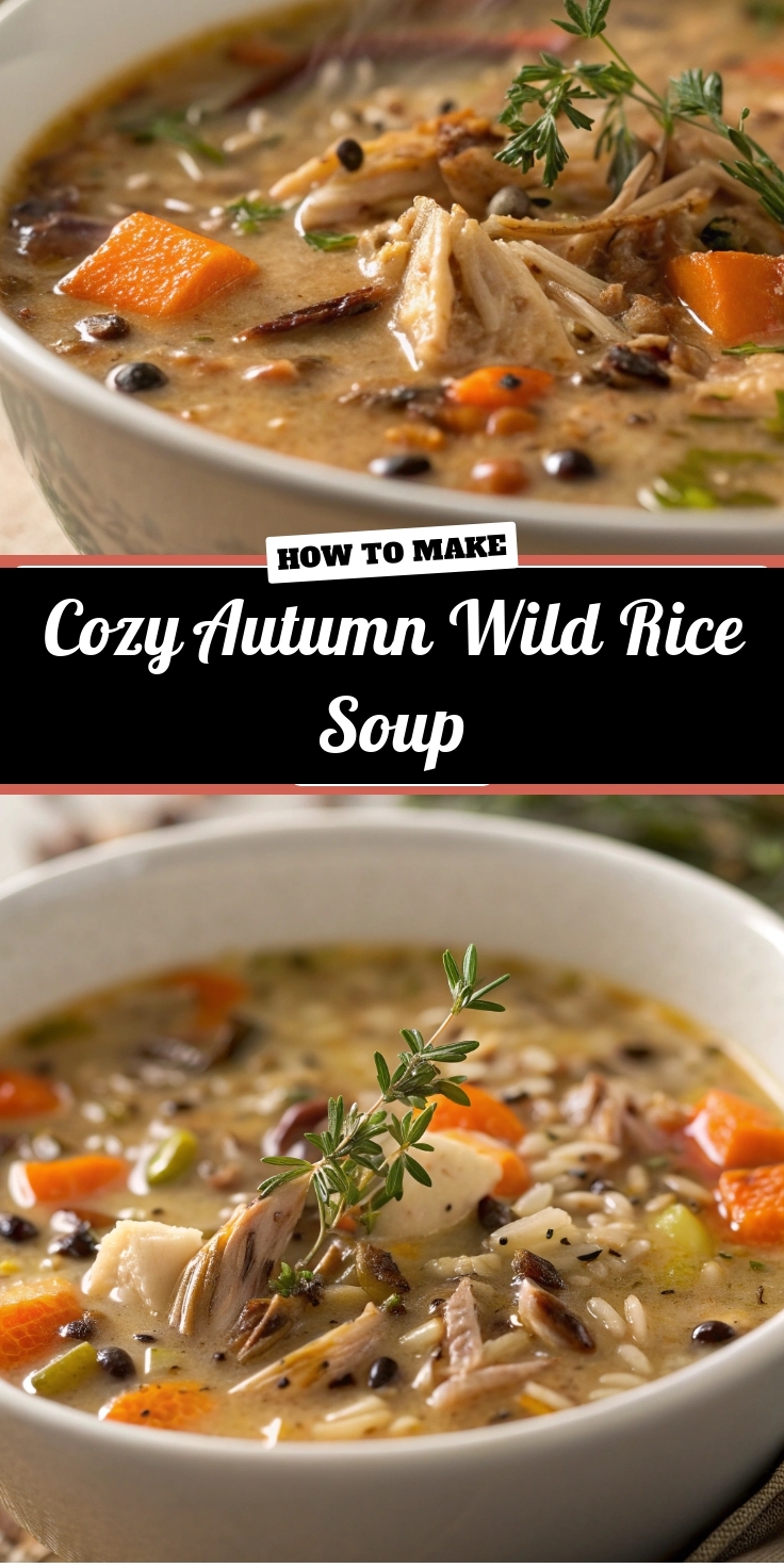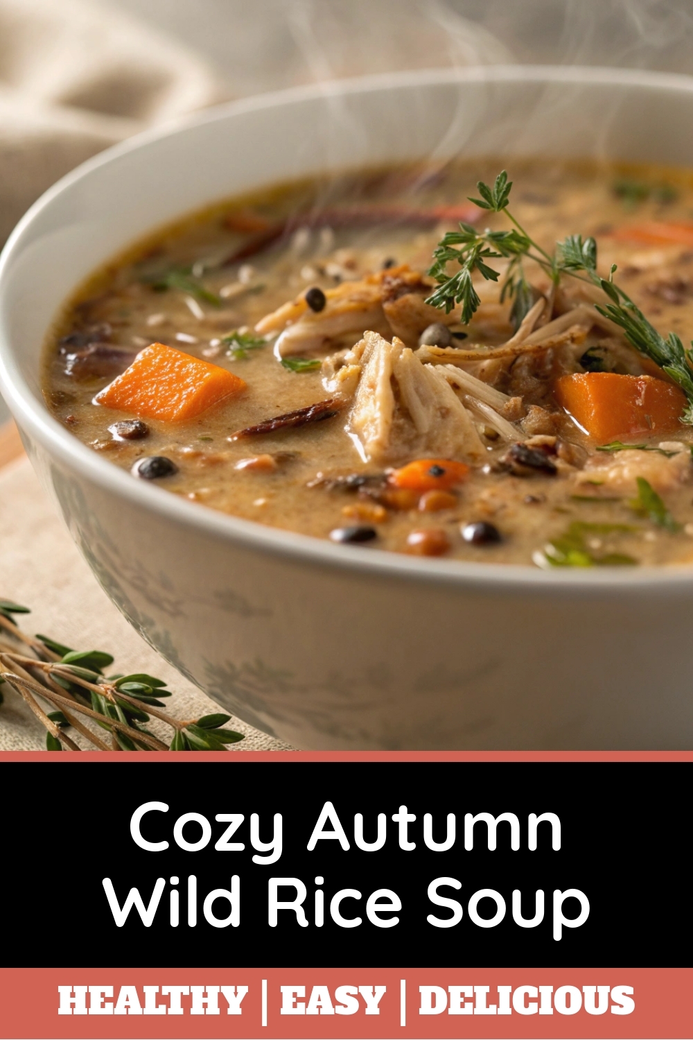 This Cozy Autumn Wild Rice Soup offers a deeply satisfying and complex sensory experience. You first notice its earthy, fragrant aroma, which fills your kitchen with the comforting scent of sautéed onions, celery, and herbs. Each spoonful delivers a rich and creamy broth that feels incredibly velvety on your tongue, even though it contains no heavy cream. The star of the dish, the wild rice, provides a wonderfully chewy and nutty counterpoint to that smooth base. Tender pieces of chicken or soft mushrooms melt in your mouth, while occasional bites of crisp carrots add a subtle sweetness and delightful textural contrast. Fresh thyme and a hint of sage weave through every element, lending an aromatic, savory quality that tastes like autumn in a bowl. Ultimately, this Cozy Autumn Wild Rice Soup is a masterful blend of hearty and smooth, making it the ultimate comfort food for a chilly evening.