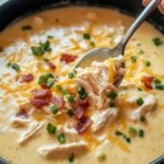 This creamy, savory soup delivers rich, comforting flavors with every spoonful, combining tender chicken, smoky bacon, and a velvety cheese base that’s utterly addictive.