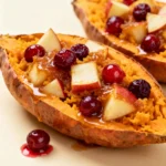 These Cranberry Apple Twice-Baked Sweet Potatoes offer a unique make-ahead advantage that simplifies holiday hosting without sacrificing flavor. Their perfect blend of creamy, sweet, and tart makes them a memorable side dish that guests will request year after year. For more sweet potato inspiration, try this Roasted Sweet Potatoes (Crispy & Easy) Recipe or these Protein Loaded Sweet Potato Boats Recipe. Give this festive recipe a try and share your experience in the comments!