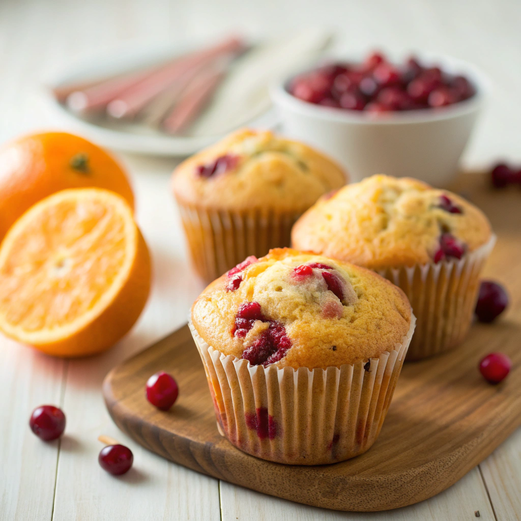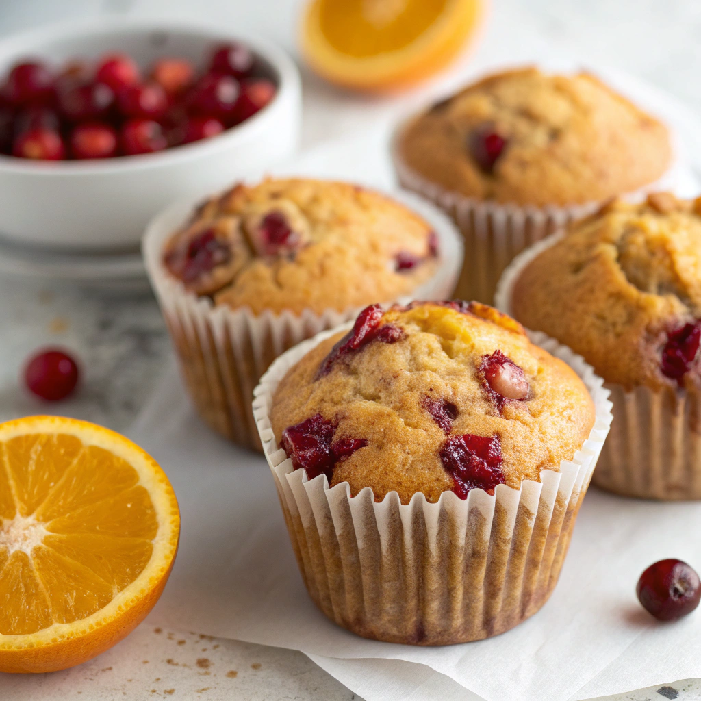 Moist and flavorful muffins made with fresh cranberries, orange juice, and orange zest, perfect for a bright and festive treat.