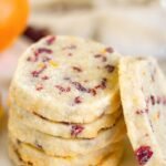 Delicious shortbread cookies infused with the flavors of orange and cranberry, perfect for the holiday season.