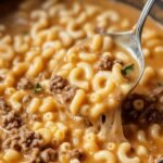 This comforting soup combines tender ground beef and pasta in a rich, creamy tomato broth that’s both hearty and satisfying.