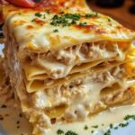 This creamy chicken lasagna with white sauce combines tender shredded chicken, fresh spinach, and rich cheeses layered between perfectly cooked pasta for a comforting, satisfying meal.