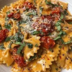 While the sauce simmers, cook your pasta according to package directions until al dente. Reserve about 1 cup of the starchy pasta water before draining. Stir the slow-roasted baby tomatoes and fresh spinach into the creamy sauce. The spinach will wilt quickly in the heat. (Pro tip: The reserved pasta water is a chef’s secret for adjusting sauce consistency later).