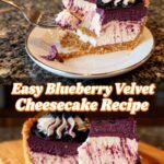 This Easy Blueberry Velvet Cheesecake Recipe is wonderfully simple and delicious, featuring a creamy filling and vibrant blueberry swirls. If you enjoy fruity desserts, try the Elegant Lemon Blueberry Cookies Recipe or the Luscious Lemon-Lime Cherry Pistachio Cheesecake Recipe for more delightful treats.
