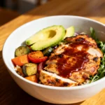 Note: Estimates based on typical ingredients and serving size. Values may vary. This Easy Low Carb BBQ Bowl is high in protein and fiber, with net carbs around 8g per serving, making it a strong low-sodium option when using a homemade sugar-free BBQ sauce.