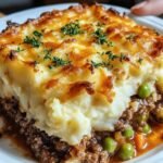 A comforting and easy-to-make shepherd’s pie casserole featuring a savory ground beef filling topped with creamy mashed potatoes, baked until golden and bubbly.