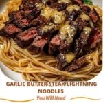 These Garlic Butter Steak Lightning Noodles combine juicy seared steak, creamy garlic-Parmesan sauce, and perfectly cooked linguine or noodles for a rich and comforting meal.[1][4]
