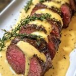 This Garlic-Herb Beef Tenderloin with Creamy Bearnaise combines aromatic herbs, rich garlic, and a velvety sauce for an unforgettable dining experience.