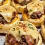 These Garlic Parmesan Cheeseburger Bombs combine savory ground beef, melted cheeses, and buttery biscuit dough for an irresistible handheld appetizer.