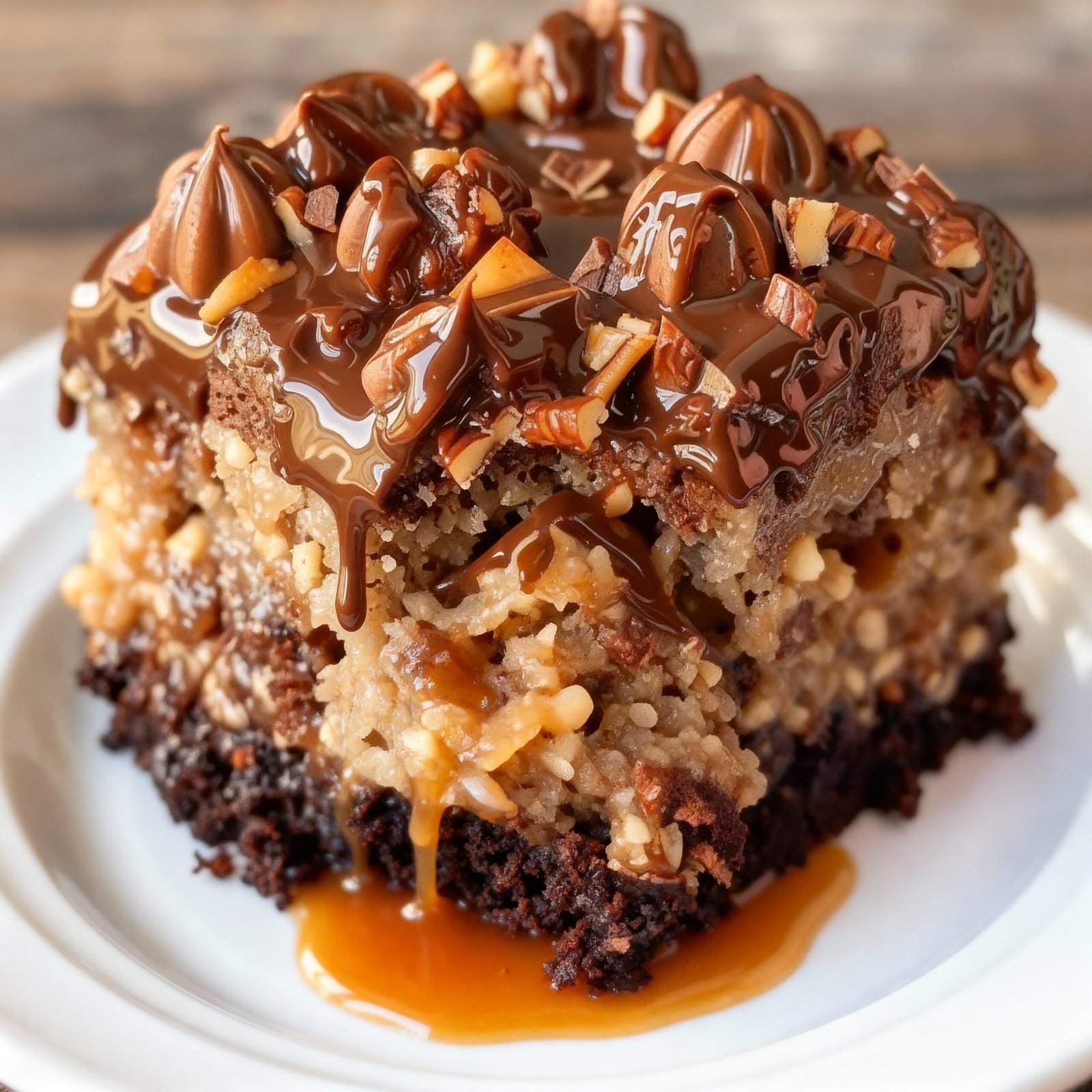 This decadent German Chocolate Poke Cake combines rich chocolate layers with creamy coconut-pecan filling and a smooth cream cheese frosting for an irresistible dessert experience.