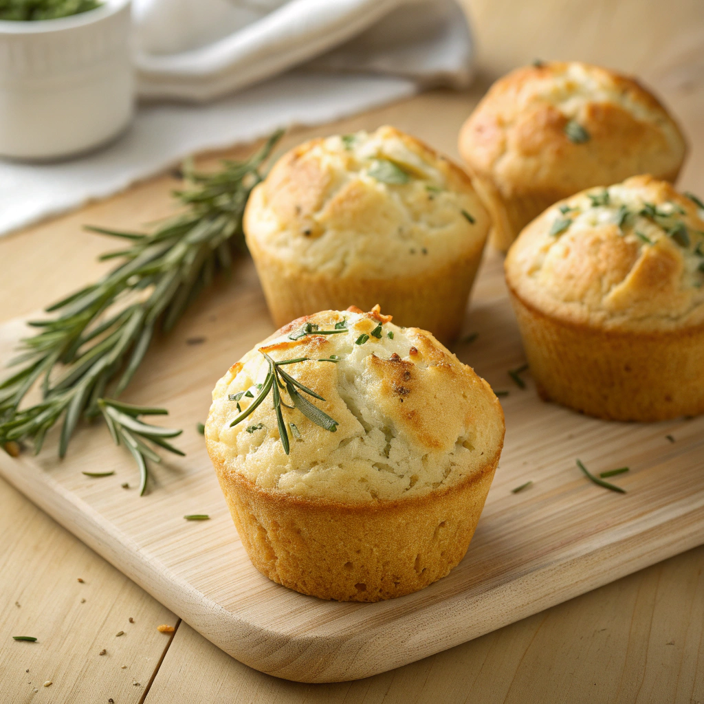 - Lower-Carb Version — Substitute half the flour with almond flour and a tablespoon of psyllium husk for structure, yielding a denser, low-carb muffin that’s still packed with garlic rosemary goodness.