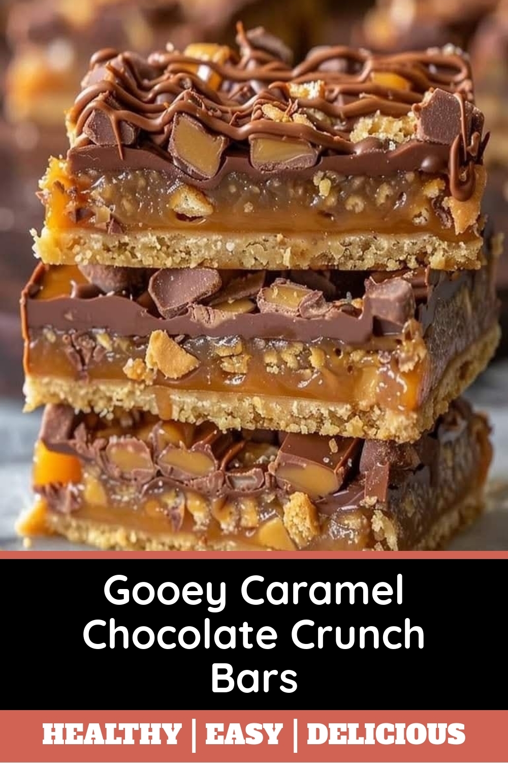 Gooey Caramel Chocolate Crunch Bars shine when you serve them with a touch of flair. For a stunning presentation, arrange them on a rustic wooden board or a sleek marble platter. Drizzle extra caramel over the top and sprinkle a pinch of sea salt to highlight the rich flavors. Meanwhile, adding fresh berries or edible flowers on the side brings a pop of color that makes them even more irresistible. These bars work perfectly for holiday gatherings, potlucks, or even as a sweet ending to casual weeknight dinners. No matter the occasion, Gooey Caramel Chocolate Crunch Bars always steal the spotlight.