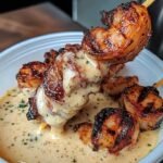 - For an elegant dinner party, plate two or three skewers over a bed of creamy risotto or zucchini noodles, drizzling the garlic butter sauce generously over the top.