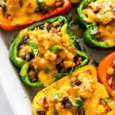 • Meal Prep Friendly: Assemble the uncooked stuffed peppers in a baking dish, cover, and refrigerate for up to a day before baking. This makes for an effortless, healthy dinner straight from the oven.
