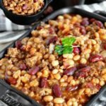 This savory and satisfying cowboy beans recipe combines smoky bacon, seasoned ground beef, and a medley of beans in a tangy, slightly sweet sauce that simmers to perfection.