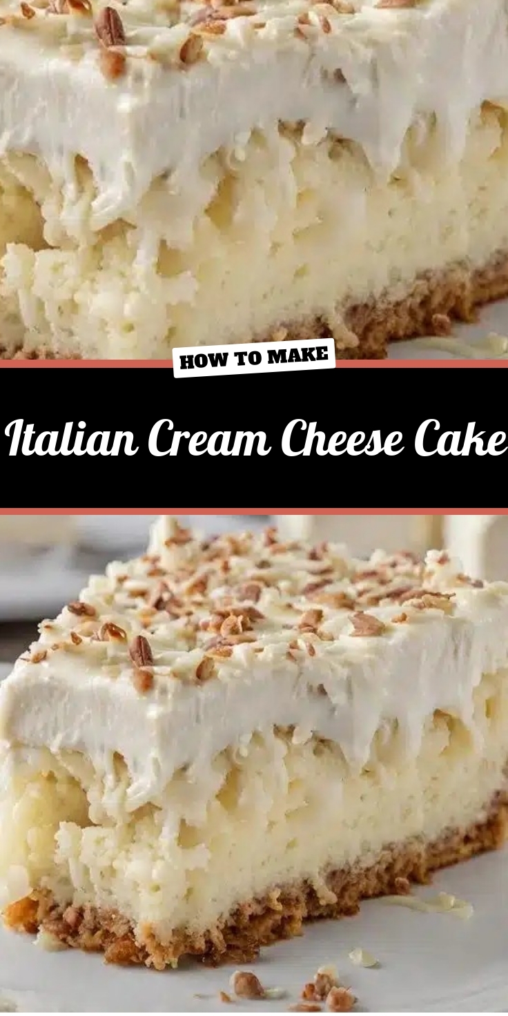 Italian Cream Cheese Cake is a symphony of textures and flavors that delights every bite. The cake itself is tender and airy, thanks to the perfect balance of buttermilk and whipped egg whites, while the cream cheese frosting adds a rich, velvety contrast. Each forkful melts in your mouth, revealing layers of toasted pecans and coconut, which bring a satisfying crunch and nutty sweetness. The cream cheese not only binds the flavors but also gives the cake a subtle tang that cuts through the sweetness, making it irresistible. Because the cake bakes to a golden perfection, the edges develop a slight crispness, while the center stays moist and fluffy. The aroma alone is intoxicating, with warm vanilla and butter wafting through the kitchen, teasing your senses before the first bite. Italian Cream Cheese Cake is a masterpiece of contrasts—creamy yet light, sweet yet balanced, and utterly unforgettable.