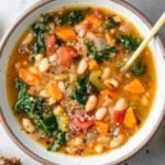This easy vegan kale & white bean soup is the perfect healthy and hearty meal for any day of the week. Packed with nutritious kale, protein-rich quinoa, and creamy white beans, it’s a satisfying one-pot wonder that comes together quickly. For another wholesome plant-based treat, try the Cranberry Lemon Bars Recipe.