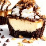 Sprinkle mini chocolate chips, crushed Oreos, or chopped nuts over each loaded brownie cheesecake cup. This adds texture and visual appeal.