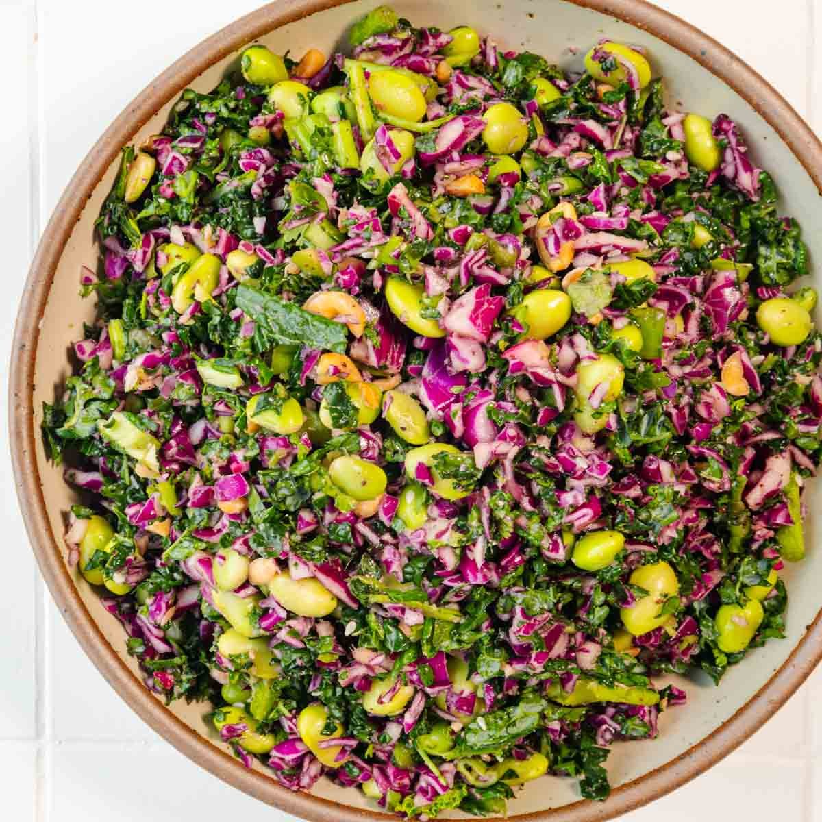 - Freezer: For longer storage, freeze the components separately. The edamame and sauce can be frozen for up to 2 months. Thaw overnight in the refrigerator before assembling with fresh kale and cabbage for optimal crunch.