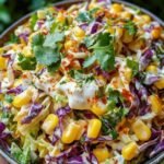 This vibrant Mexican Street Corn Coleslaw combines smoky charred corn, crisp cabbage, and fresh peppers with a creamy, zesty chili lime dressing for a flavor-packed side dish.