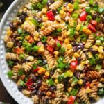 This crowd-pleasing pasta salad combines the flavors of Mexican street corn with pasta, fresh corn, black beans, bell peppers, cilantro, and a creamy lime dressing for a smoky, tangy side dish perfect for summer gatherings.