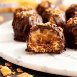To prevent cracking, ensure your truffle centers are chilled but not frozen before dipping. Use tempered chocolate or add a teaspoon of coconut oil to your melting chocolate to keep it fluid and help it set smoothly on your No Bake Butterfinger Truffles.