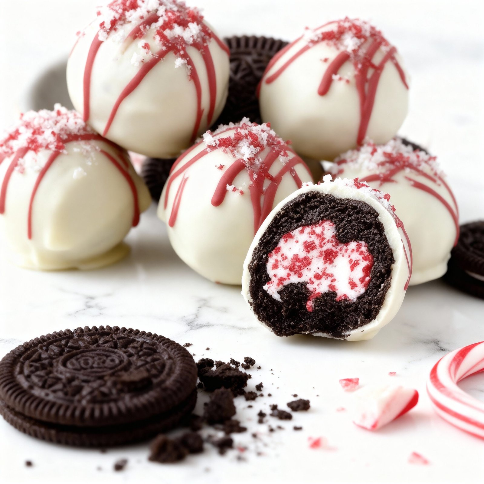 These festive truffles combine the cool crunch of peppermint with rich chocolate and creamy Oreo filling for an irresistible holiday treat that requires zero oven time.