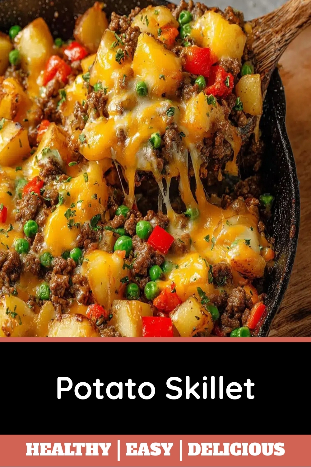 This Potato Skillet delivers a masterclass in comforting textures and savory flavors. You first get greeted by the incredible aroma of onions and garlic sizzling in herbs, a fragrance that promises a deeply satisfying meal. Each forkful creates a perfect harmony because you get the creamy, tender interior of the potatoes against their wonderfully crisp and golden-brown exteriors. The melted cheese adds a luxurious, gooey richness that blankets every ingredient, while bits of crispy bacon or savory sausage provide a chewy, salty counterpoint that makes every bite exciting. Fresh herbs like rosemary or chives cut through the richness with a fragrant, almost floral note, so the dish never feels too heavy. The beauty of this Potato Skillet lies in its rustic, hearty character, which is both incredibly filling and wonderfully delicious from the first bite to the last.
