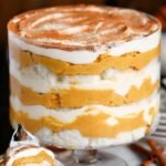 This Pumpkin Cheesecake Trifle combines fluffy angel food cake with a creamy spiced pumpkin filling and billowy whipped cream for a dessert that’s both visually stunning and deliciously satisfying.
